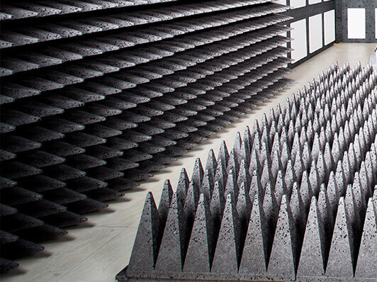 | Absorbing Materials | Type:Ferrite tiles (30 MHz ~ 1 GHz) + carbon-based pyramidal absorbers (1 GHz ~ 40 GHz) Low-frequency optimization: Double-layer ferrite + pyramidal composite structure High-frequency optimization: Absorber height 0.3~0.6m (reduces reflection, improves mmWave performance) |