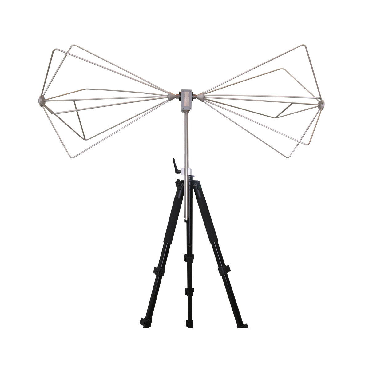 The OBC-022-10W-1 model is used for radiation and immunity testing to meet various EMC standards. Its frequency range is 20 MHz to 200 MHz. The broadband characteristic of biconical antenna makes it an ideal choice for scanning measurement and automatic measurement systems.Biconical antennas can be used formany applications, in which half-wavedipoles have been used traditionally.An enourmous reduction of measurement time can be achieved,because the time consuming tuning of the antenna elements to the half wavelength is not needed, an important condition for sweeped broadband measurements. In typical dipole applications several discrete frequencies are measured, in contrast the bi conical antenna allows continuous sweeps, where site anomalies are discovered much easier.