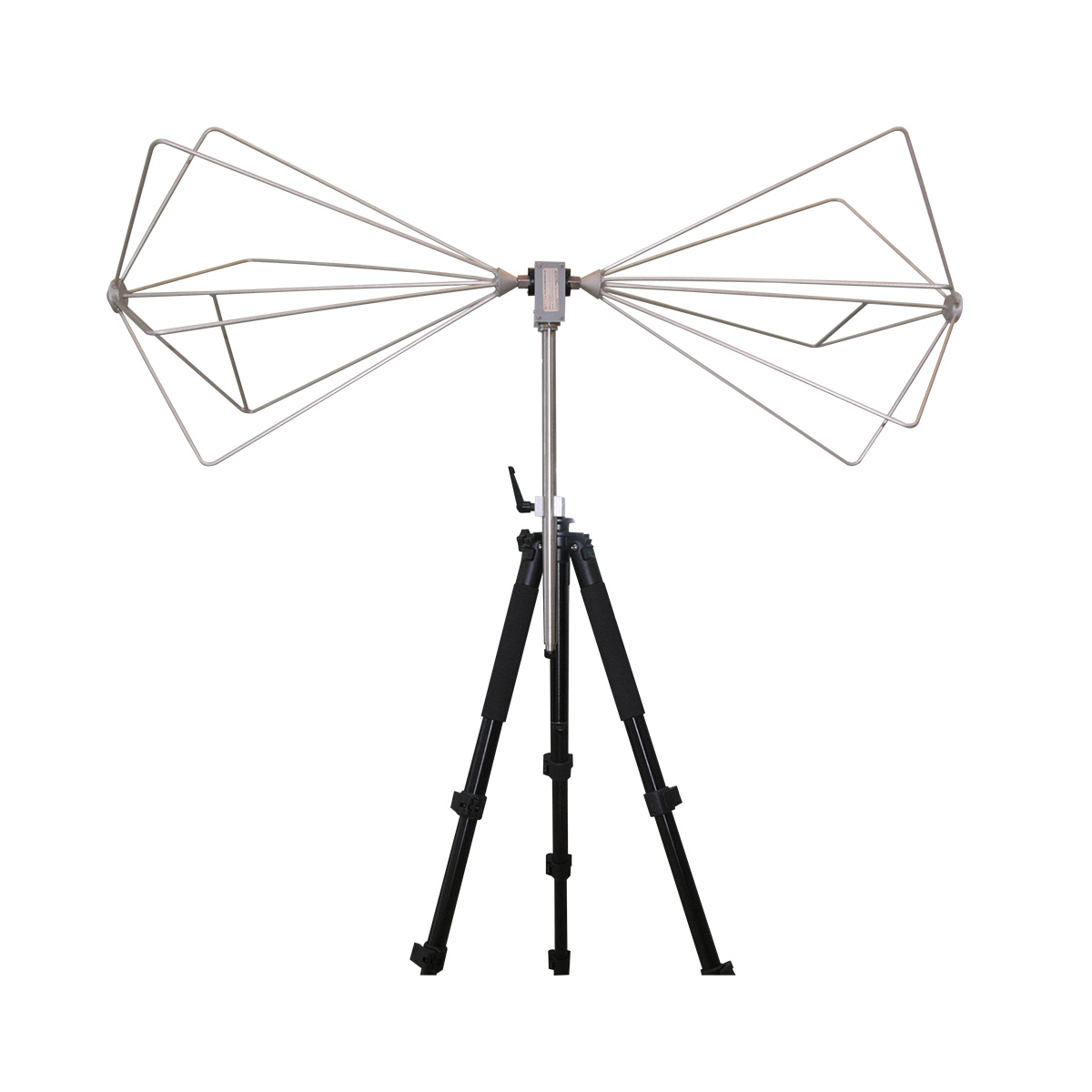 OBC-033-1KW-4 biconical EMC broadband antenna has durable aluminum alloy, and we powder coated them toimprove corrosion resistance. Its features include a gamma matching rod, which avoids the immersion between275 MHz and 290 MHz common to other biconical antennas.