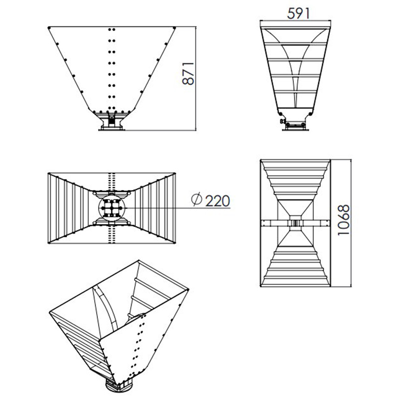 OBH-230 Dual-Ridged Horn Antennas operate broadband from 200MHz to 3GHz. It is wider than the usual 200M-2GHz antenna bandwidth range of 35%. The proposed antenna comprises a coaxial to double-ridge waveguide (DRW) transition and a firee-space matching section. An exponentially-tapered matching section is employed and optimized to achieve a smooth transition and a goodimpedance match to the free space. The gain increases with frequency up to approx.15 dBi,depending on the horn’s size and shape. The specially designed coaxial sticture can handle up to1000W of transmission power.
