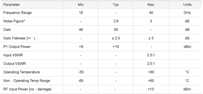 >Noise Figure ≤ 3.0 dB