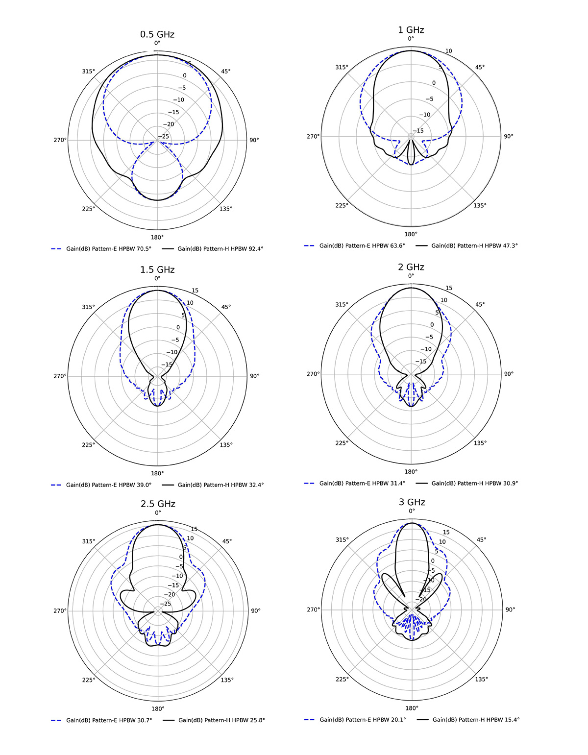 Ultra Wide-Band Dual Ridged Horn Antenna 0.4-6GHz